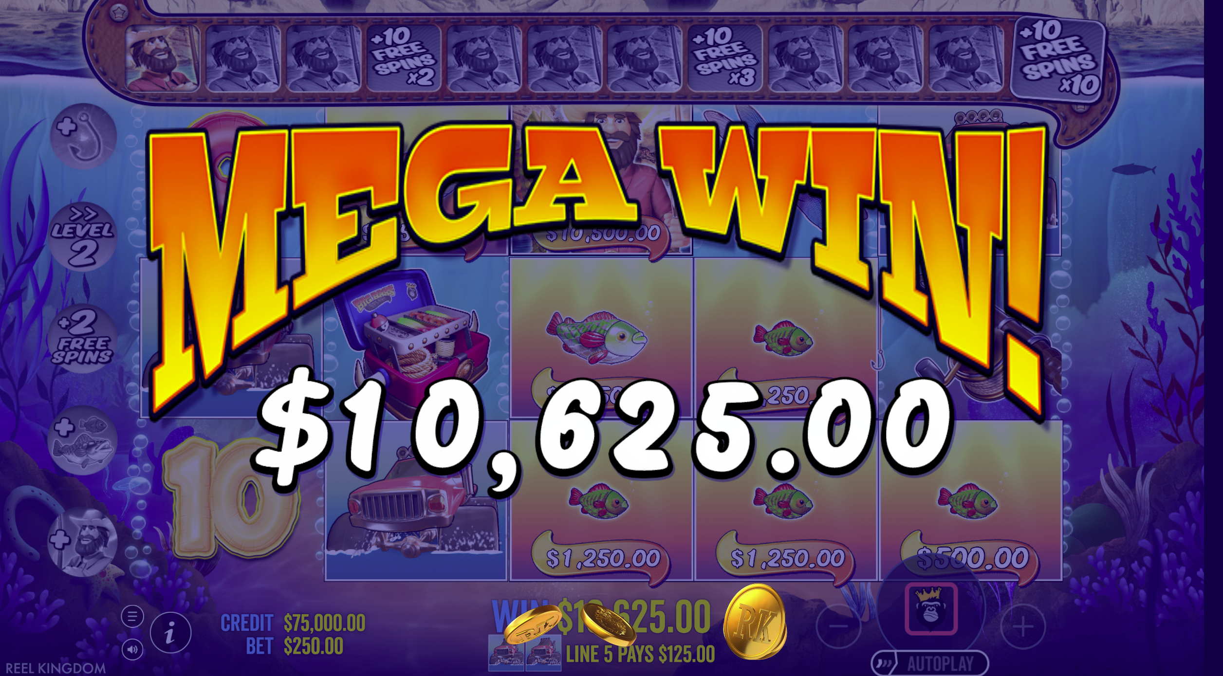 The free spins round is arguably more satisfying than in the original. With the Fisherman Wild permanently stuck to reel 5, every money symbol that lands is automatically collected, and each collection adds an extra free spin. This creates a potentially endless bonus round where skilled play (and good luck) can lead to extended, rewarding sessions.
